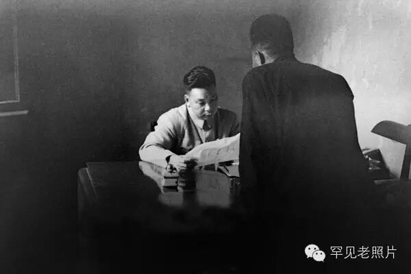 1948年,上海,蒋经国在办公室倾听小商贩的投诉。此时蒋经国主持负责稳定上海物价工作。