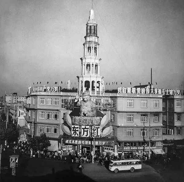 1956年1月21日,上海市50万人在人民广场集会,庆祝社会主义改造胜利,图为大会主席台。
