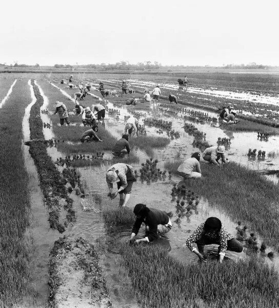 1959年,上海金山县浩光人民公社试验田收割后,稻场上的“丰收”场景。晓庄/摄。