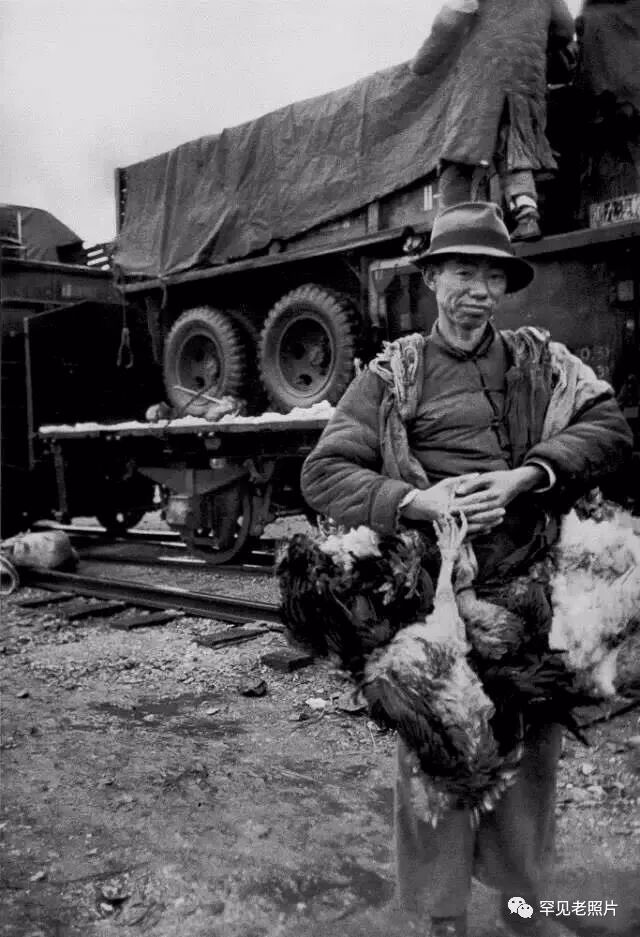 1948年11月,一个农民试图向载着撤退部队的火车兜售自家养的鸡,却没有成功。