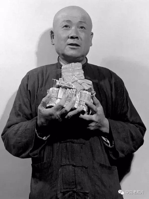 1948年3月,上海,老百姓手中不值钱的法币。Jack Birns/摄。