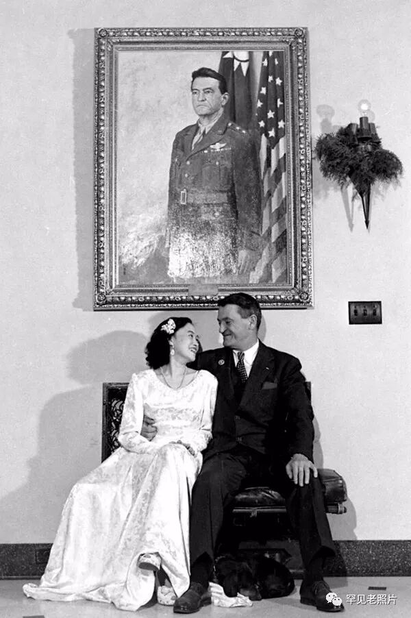 1948年1月,上海,陈纳德与陈香梅。杰克·比尔斯/摄。