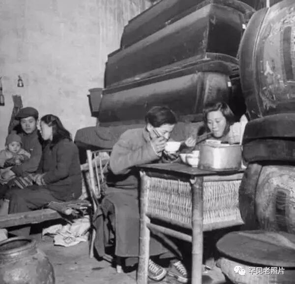 1948年,上海义庄。寄居在棺材铺的底层百姓。