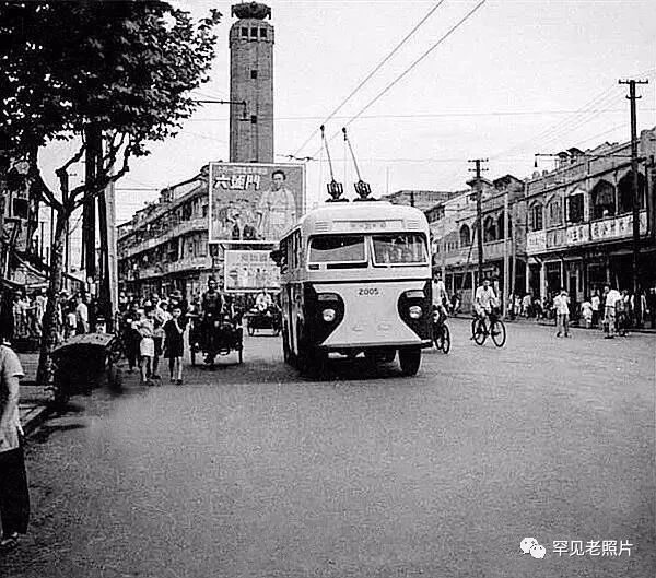 1953年,上海,无轨21路电车环城线试车,无论远近票价一律4分。