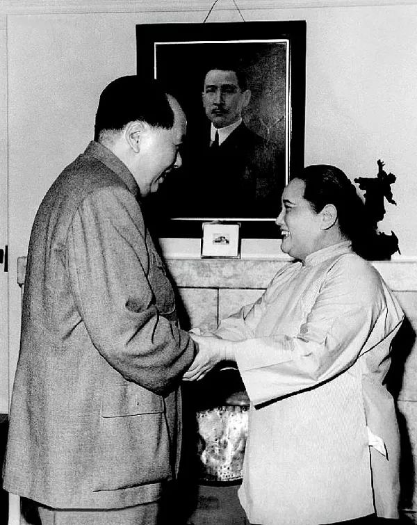1961年,上海,毛泽东看望宋庆龄。吕厚民/摄。