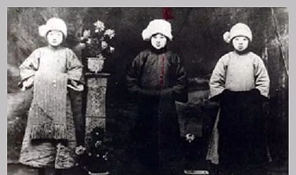 1919年,萧红八岁时,生母姜玉兰病故,同年其父娶继母梁亚兰。 这是 1926年萧红与继母梁亚兰的两个妹妹梁静芝(中)、梁玉芝(左)。