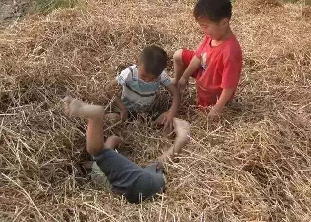 如果说现在的孩子有充气蹦蹦床,那麦秸垛就是我们的蹦蹦床。无所顾忌,肆无忌惮,