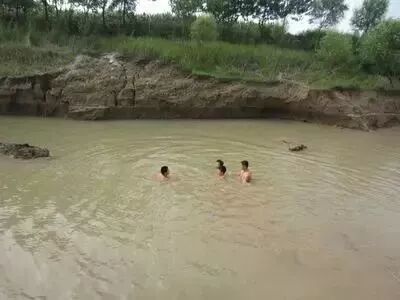 池塘成了天然的游泳池,一到傍晚就有孩子偷偷来玩水了,不过安全是个大问题!