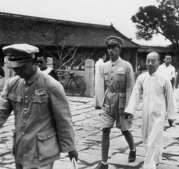 1942年5月2日,周作人又作为汪精卫的随员,赴伪满访问,庆祝“满洲帝国”建国十周年。周作人在日记中记有“随主席进宫谒见……在嘉乐殿筵席”。