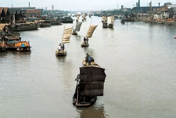 1972年,无锡,大运河吴桥北段的帆船 。威廉·约瑟夫/摄。