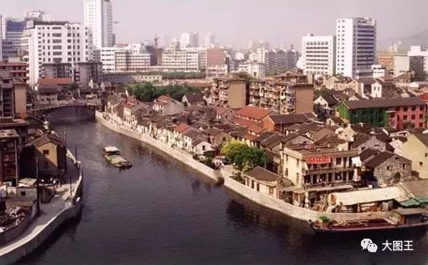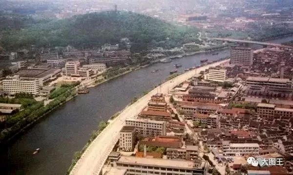 1990年代,无锡运河东路,弯弯的河流和弯弯沿河道路。