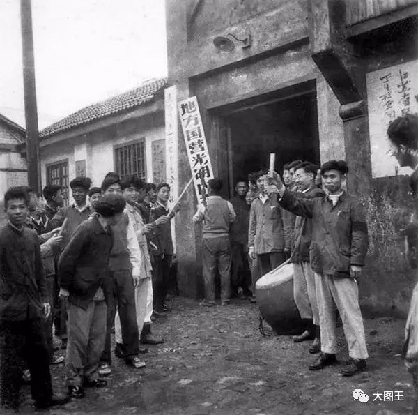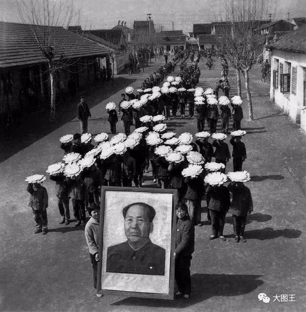 1969年4月,无锡,驻锡部队某部营房前,为庆祝"九大"召开,用葵花拼成"九大"站姿。