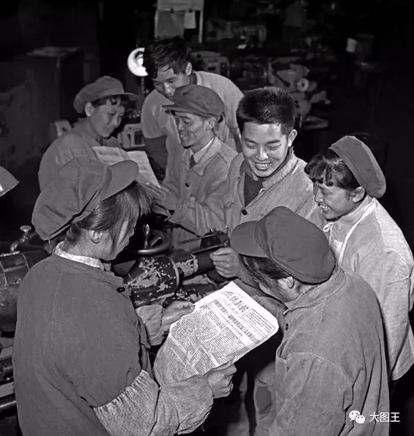 1978年12月24日,无锡油泵油嘴厂工人喜读党的十一届三中全会公报。顾祚维/摄。