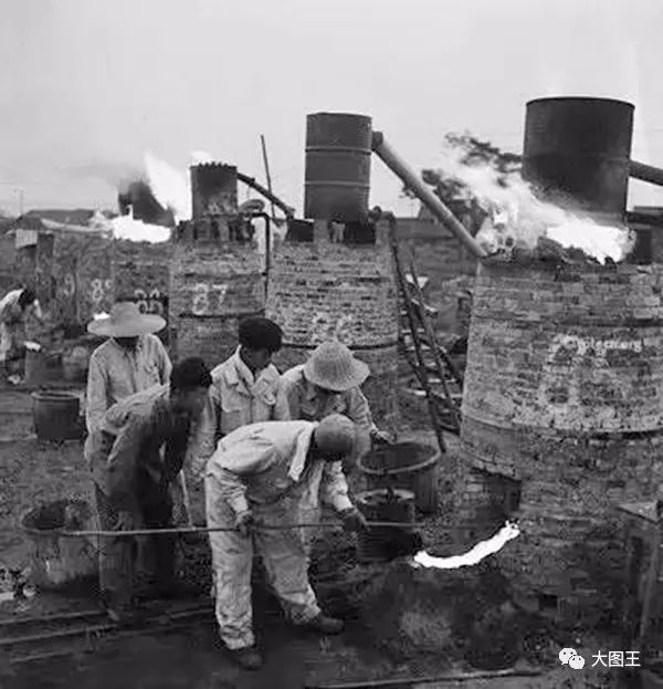 1959年,无锡市红旗钢铁厂土高炉出铁。晓庄/摄。