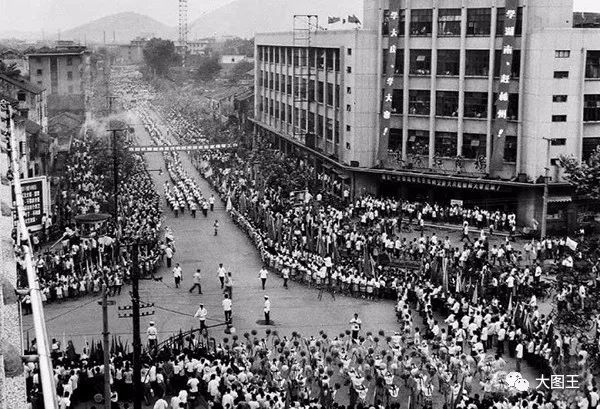 1967年,无锡西门五爱广场,远处是工农兵影剧院(后来的无锡大戏院)。