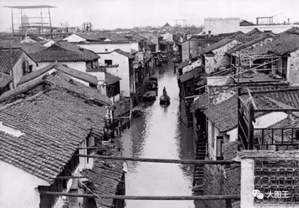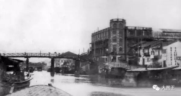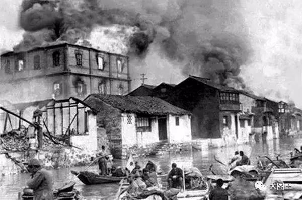 1937年11月26日,日军侵占民船在南门外的古运河上,河畔厂房在燃烧。
