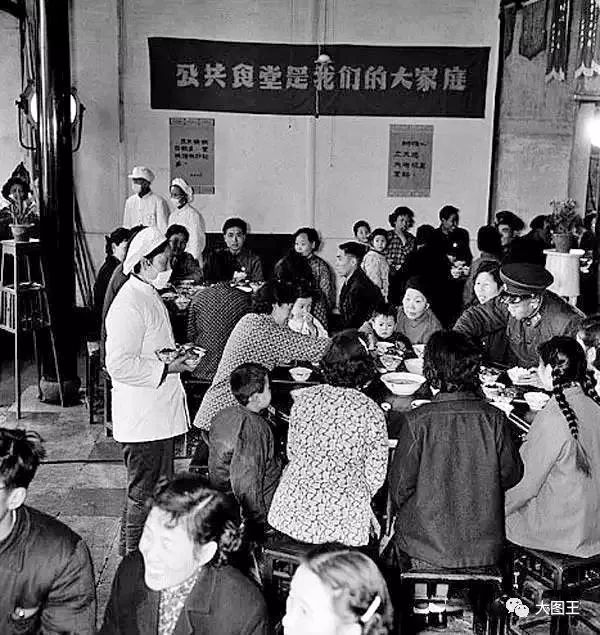 1959年,无锡市和平区居民大食堂,"大跃进"年代为解放劳动力提倡吃饭食堂化。