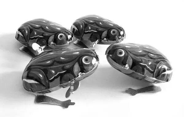 我的第二件玩具,拧发条,一按就会跳的小青蛙。
