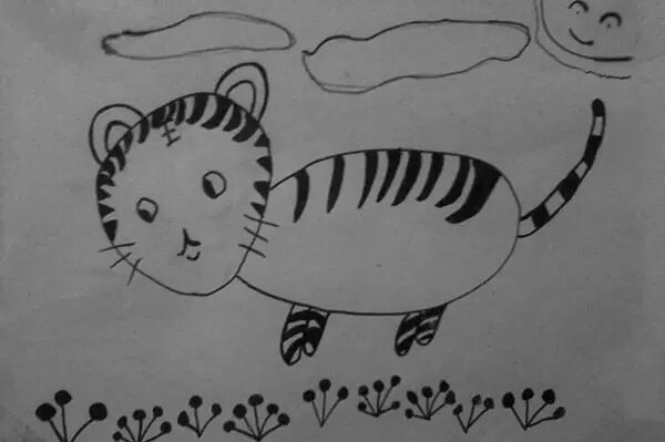 小时候,在学校学会的第一件美术作品——画老虎。