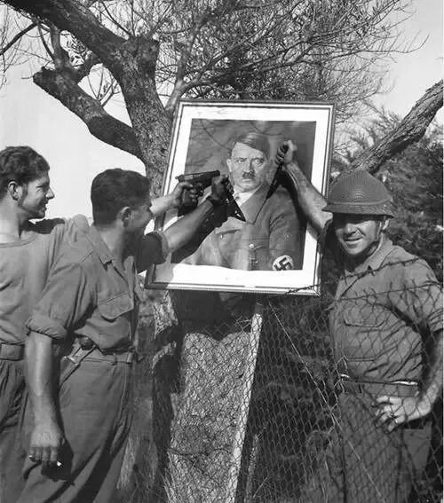 1944年,法国士兵将刀枪指向了希特勒的画像,预示着纳粹末日的来到