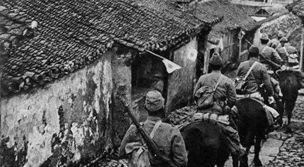 鬼子进村了……于是有些村民在自家插上日本国旗,免遭房屋被烧毁。