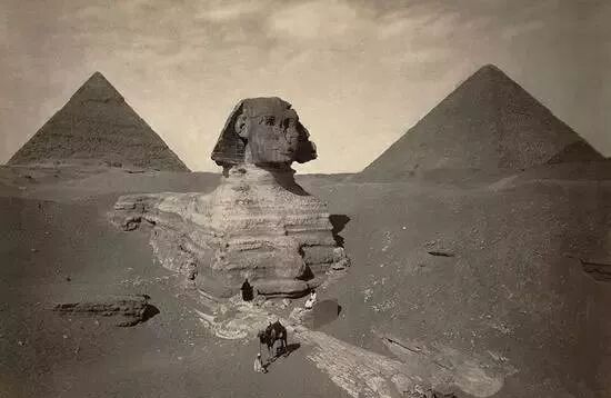 上世纪二三十年代,狮身人面像的部分身体还埋在黄沙里。