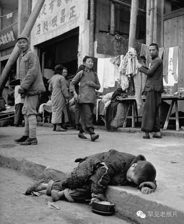 1927年,某市街头上,一名被饿死的小乞丐。