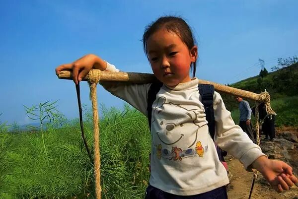2011年,爸爸妈妈在外地打工,放学后帮助爷爷奶奶干农活的小女孩。