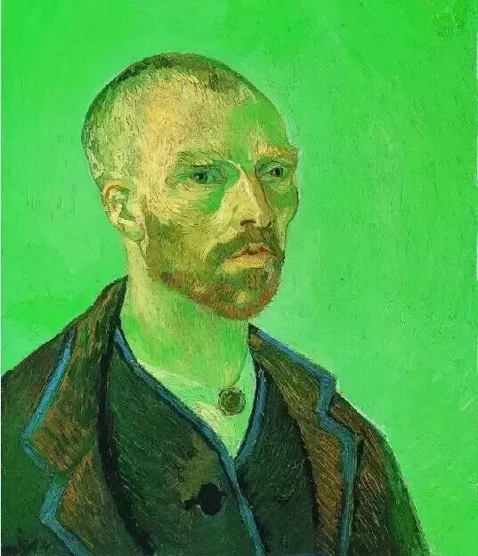画中的梵高头发剪得很短,整个人显得瘦骨嶙峋。紧张的眼神迷茫地凝视着远方。看上去像一个日本佛教和尚。