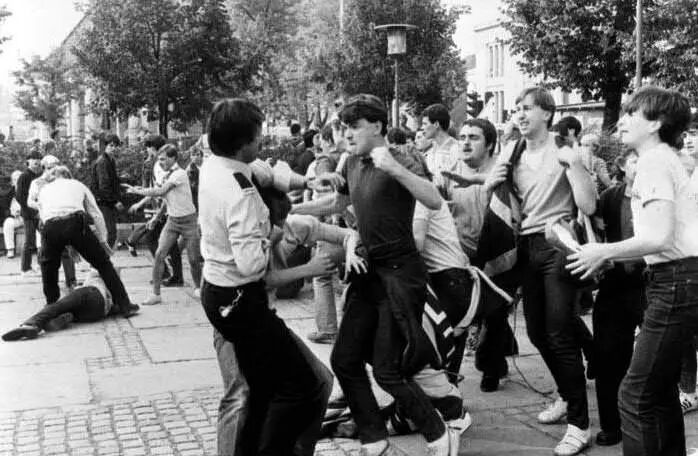 1981年,在挪威奥斯陆举行英格兰对挪威的足球赛,英国球迷与警方发生冲突。