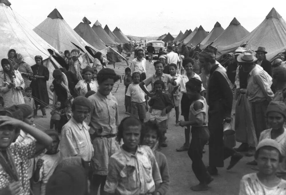 犹太难民,主要是儿童,1954年在以色列难民营。