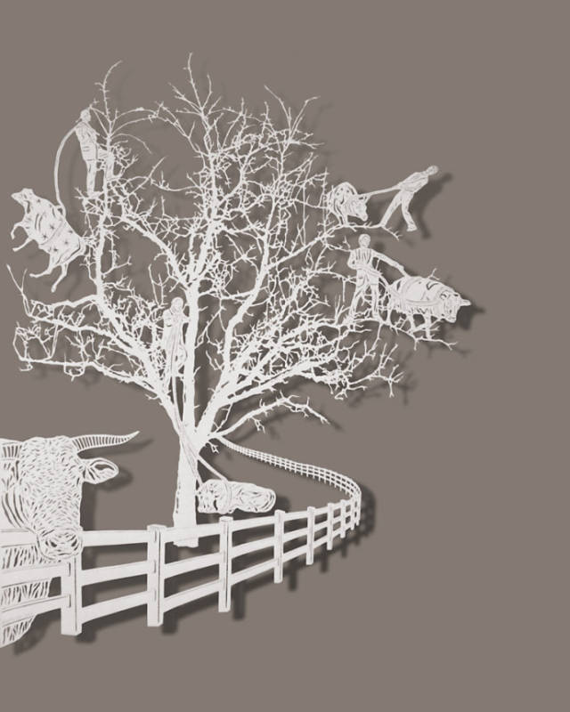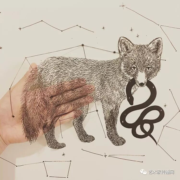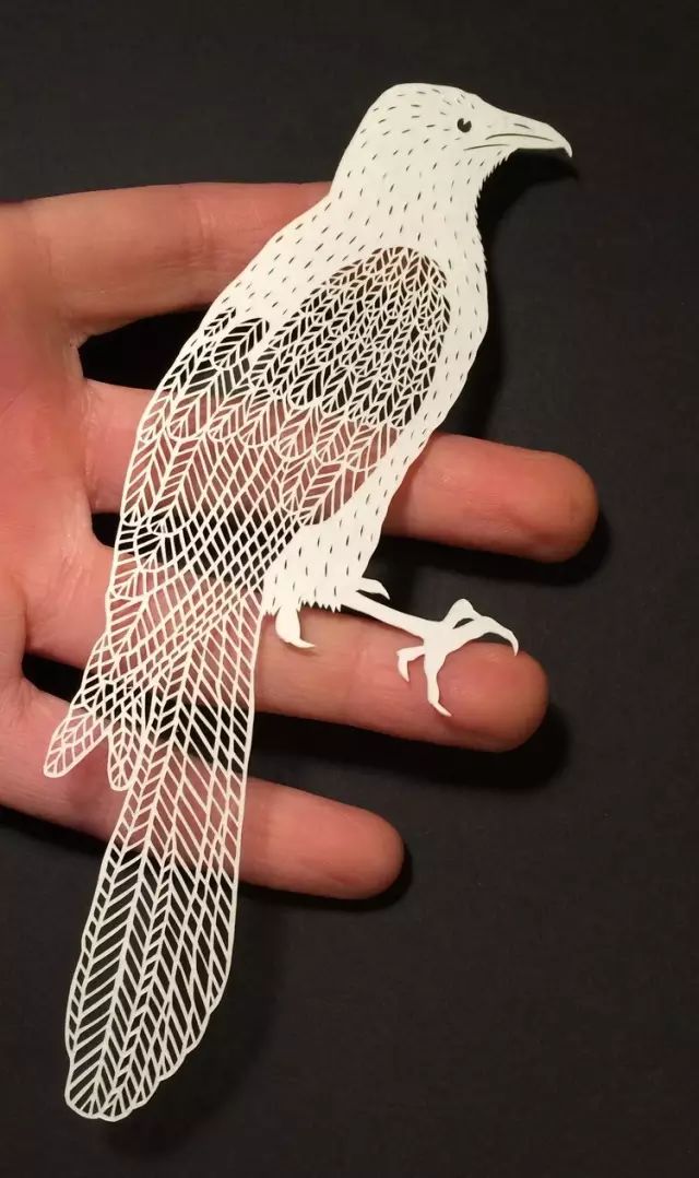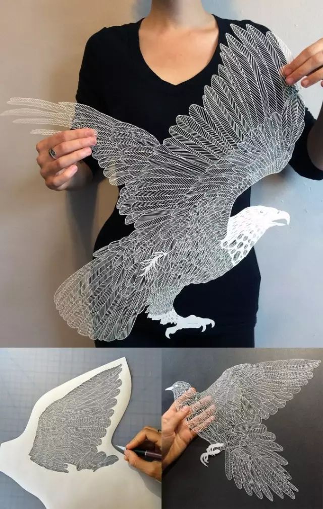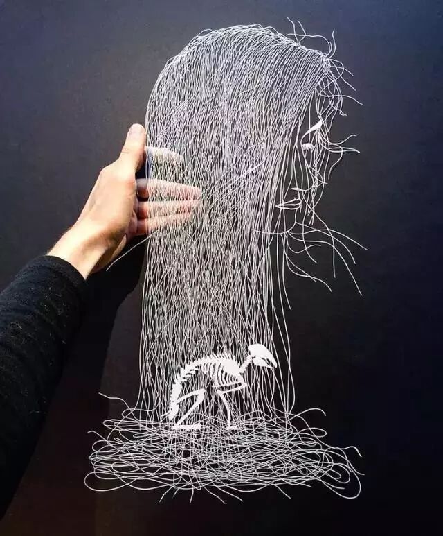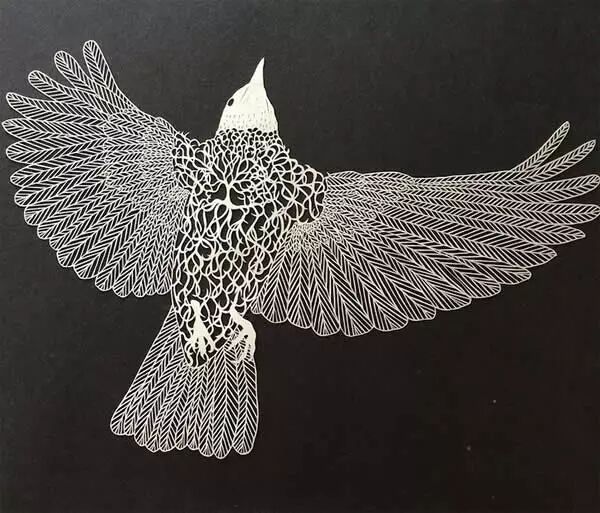 Maude对纸非常尊重,她认为每片纸都在述说一个故事。她借鉴了材料的持久强度,手工切割片,每个都十分小心,创造出细节惊人的自然风格图像。