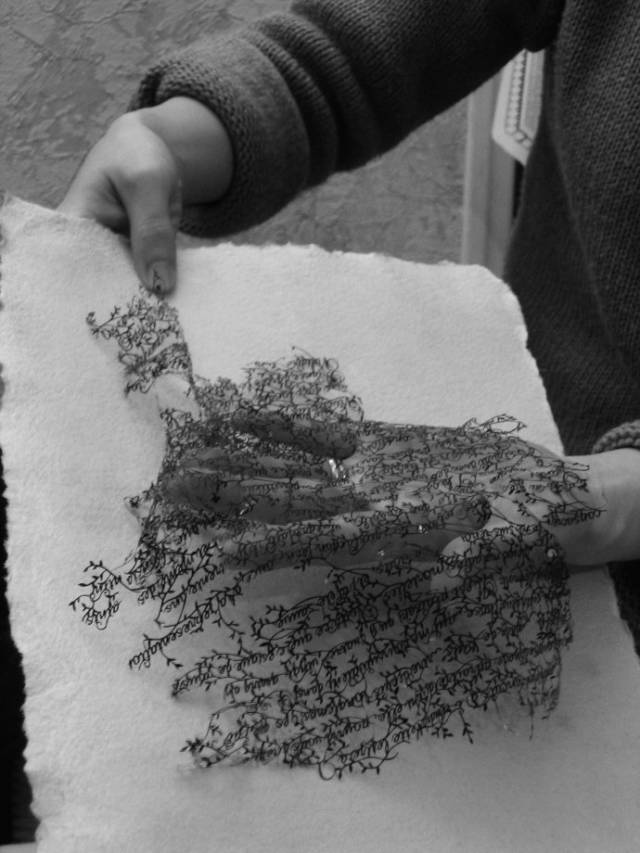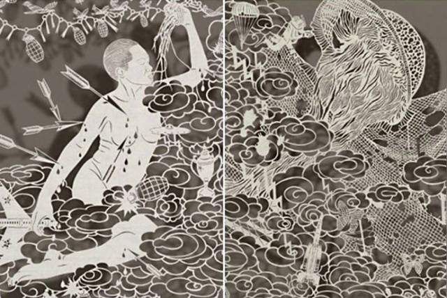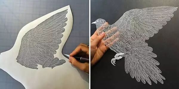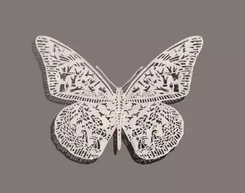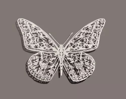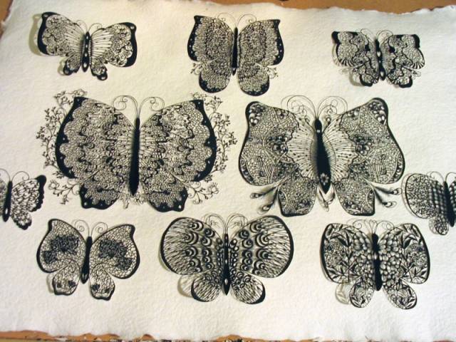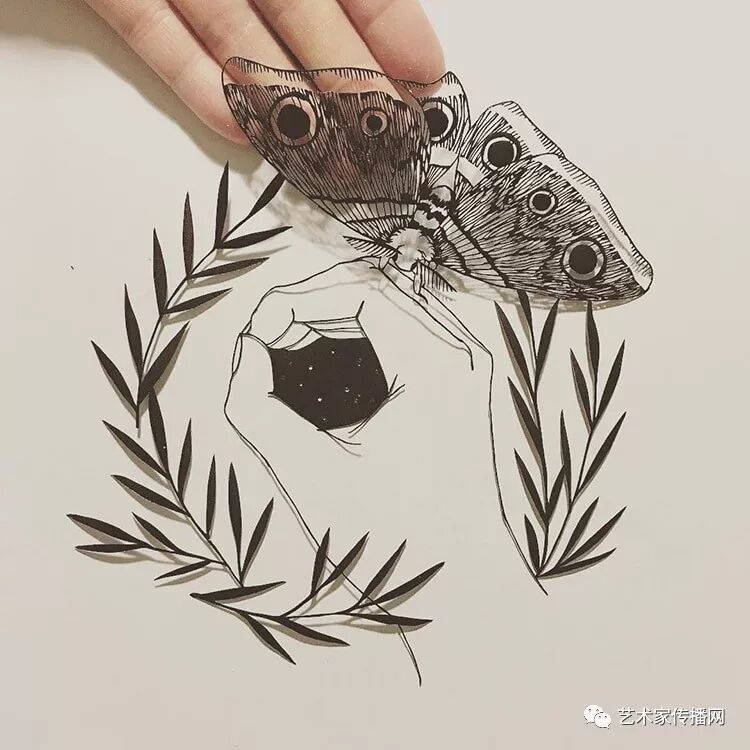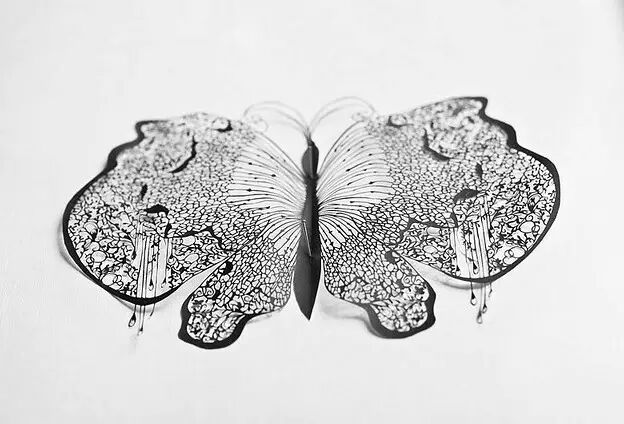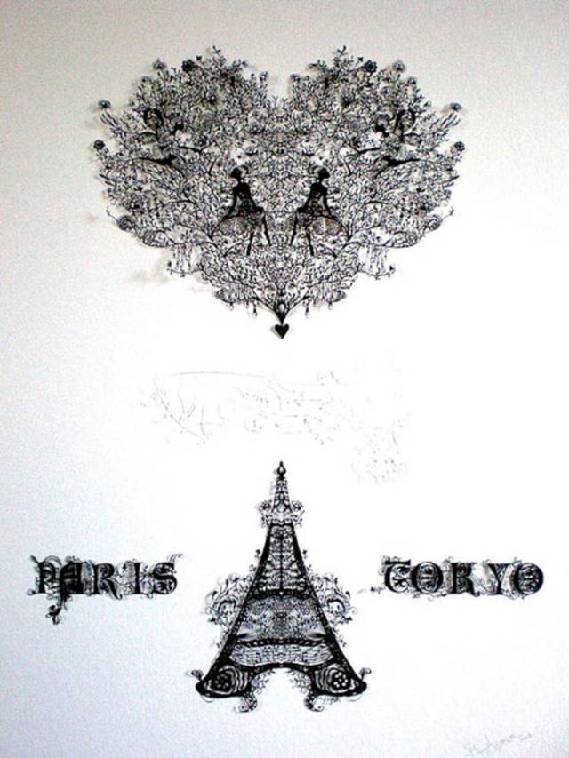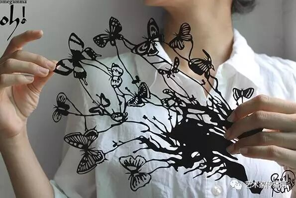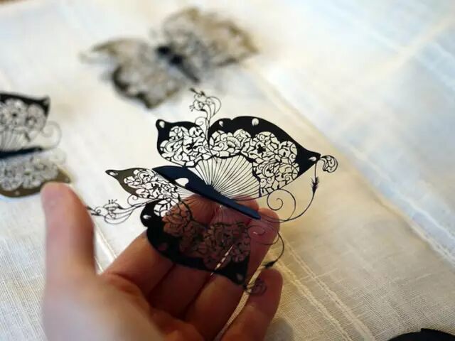 俱有日本血統的Hina Aoyama似乎天生就具有絕佳的工藝天份,細緻的作品,彷彿把日本人的嚴謹與耐心展露無遺。下面這一系列蝴蝶的作品,不難發現他每一次的創作都是獨一無二的。如果你再繼續看下去,就能夠看到她那幅讓人驚喜的文字剪紙作品,絕對讓你歎為觀止。