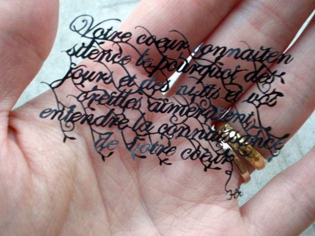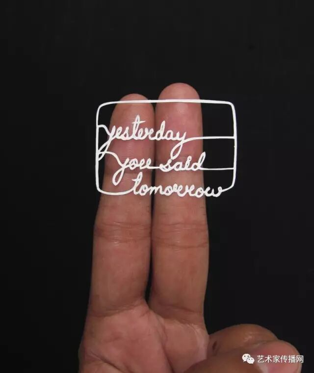她独创了一种仿佛微雕一般的字母剪影艺术。她的剪紙藝術同樣讓人驚嘆不已。據說只要給她壹把剪刀和壹張紙,她就能剪出令人贊嘆不已的作品。