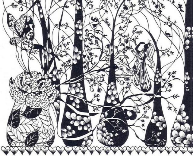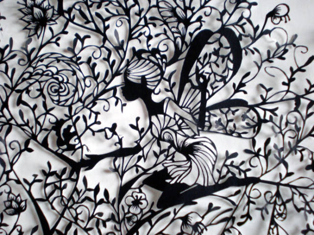 乍一看,这些作品似乎是对立纯黑色背景复杂的白色线条插图。然而,在现实中,每件作品都是由艺术家Maude White精心创造的剪纸艺术。