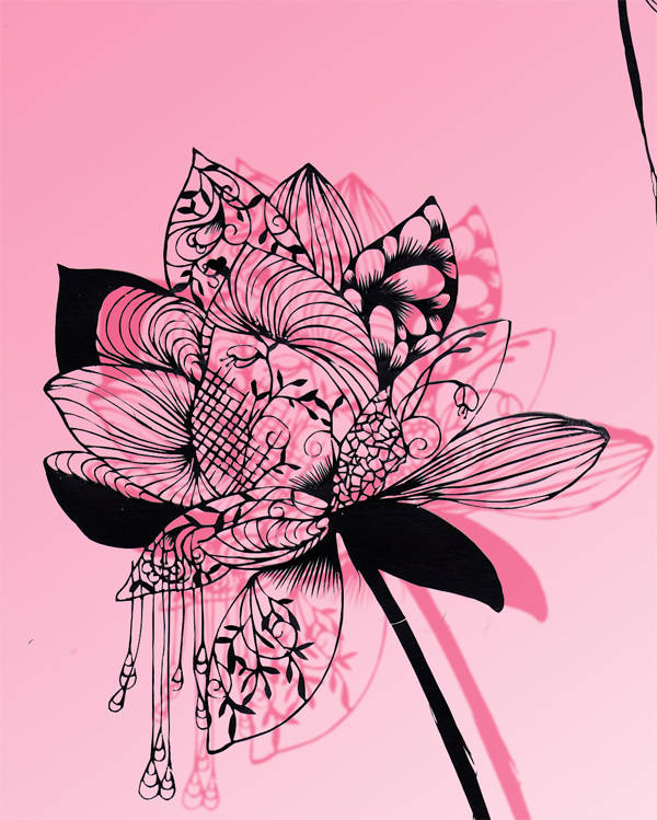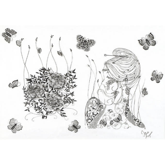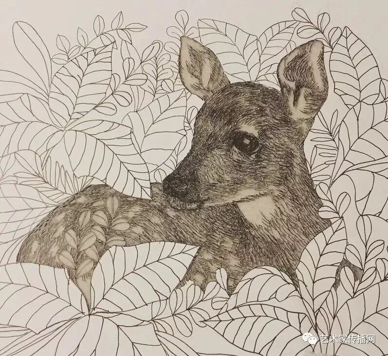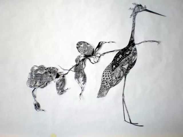 10岁开始她便开始走上艺术之路。图中的作品用的是中国宣纸。一样的画纸,不一样的艺术。