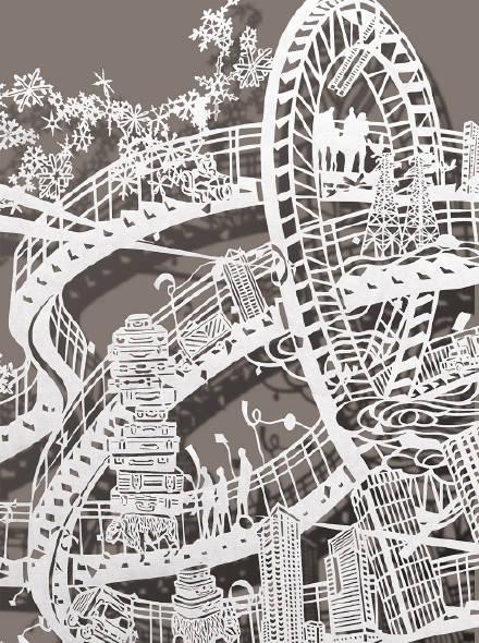 人与动物相映成趣,动物和人完全可以很融洽地相处,很愉快地玩耍。不仅如此,而且创意感十足,每一个纸片都在述说着一个故事。