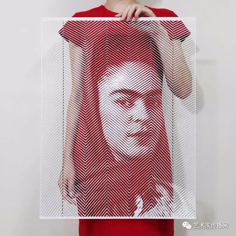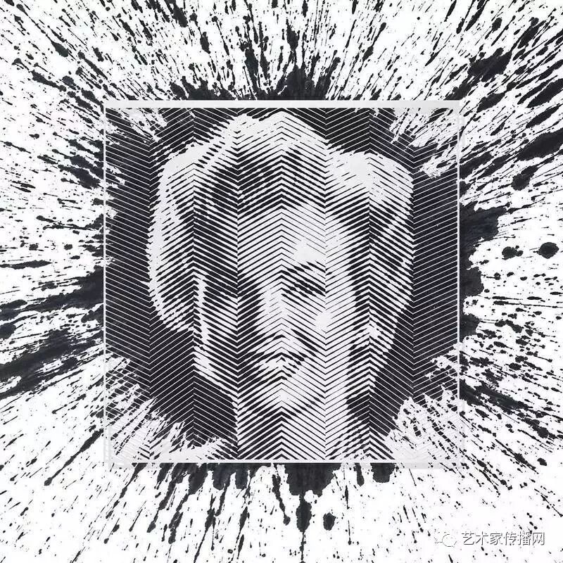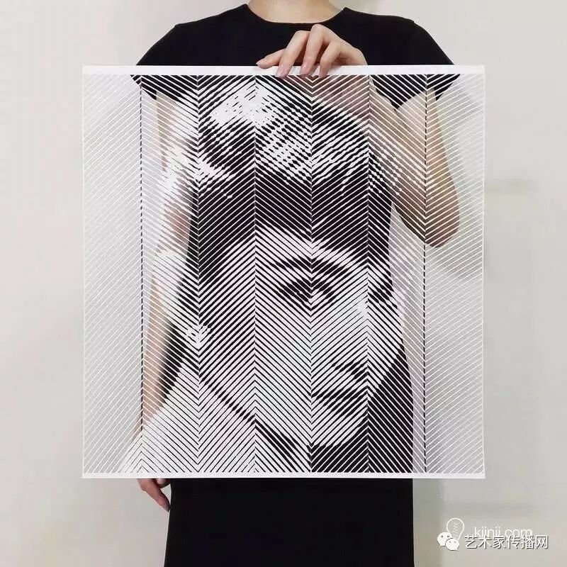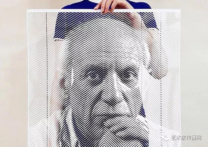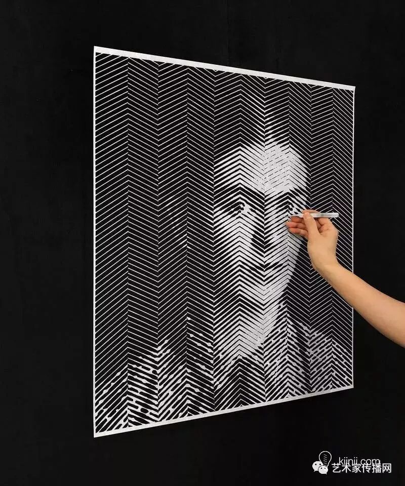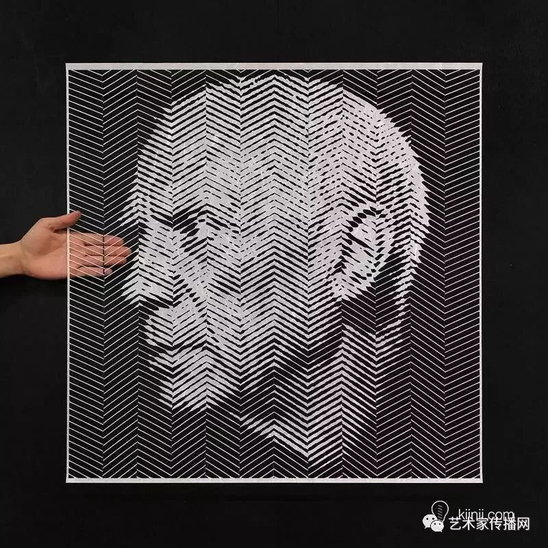 却另辟蹊径,他的所有刻纸,几乎都是对称性的条纹,但利用条纹的粗细,加上拿捏,将看似简单的刻纸变成风格明显的著名人物艺术肖像。