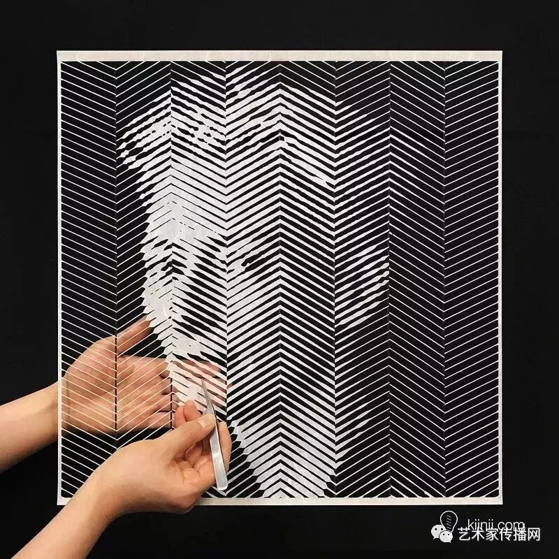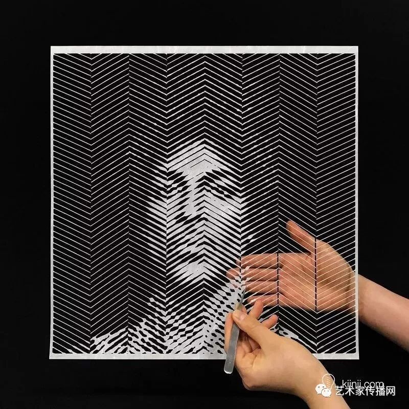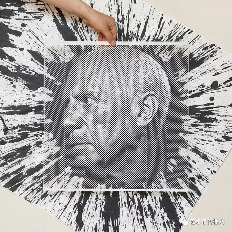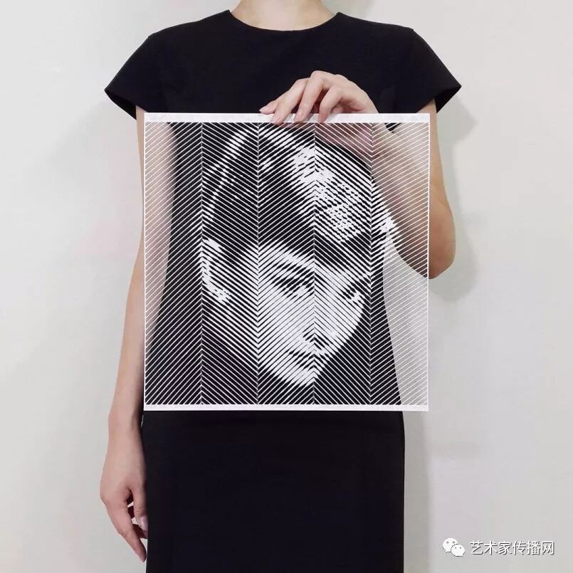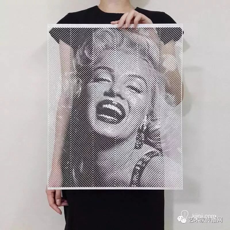 却另辟蹊径,他的所有刻纸,几乎都是对称性的条纹,但利用条纹的粗细,加上拿捏,将看似简单的刻纸变成风格明显的著名人物艺术肖像。
