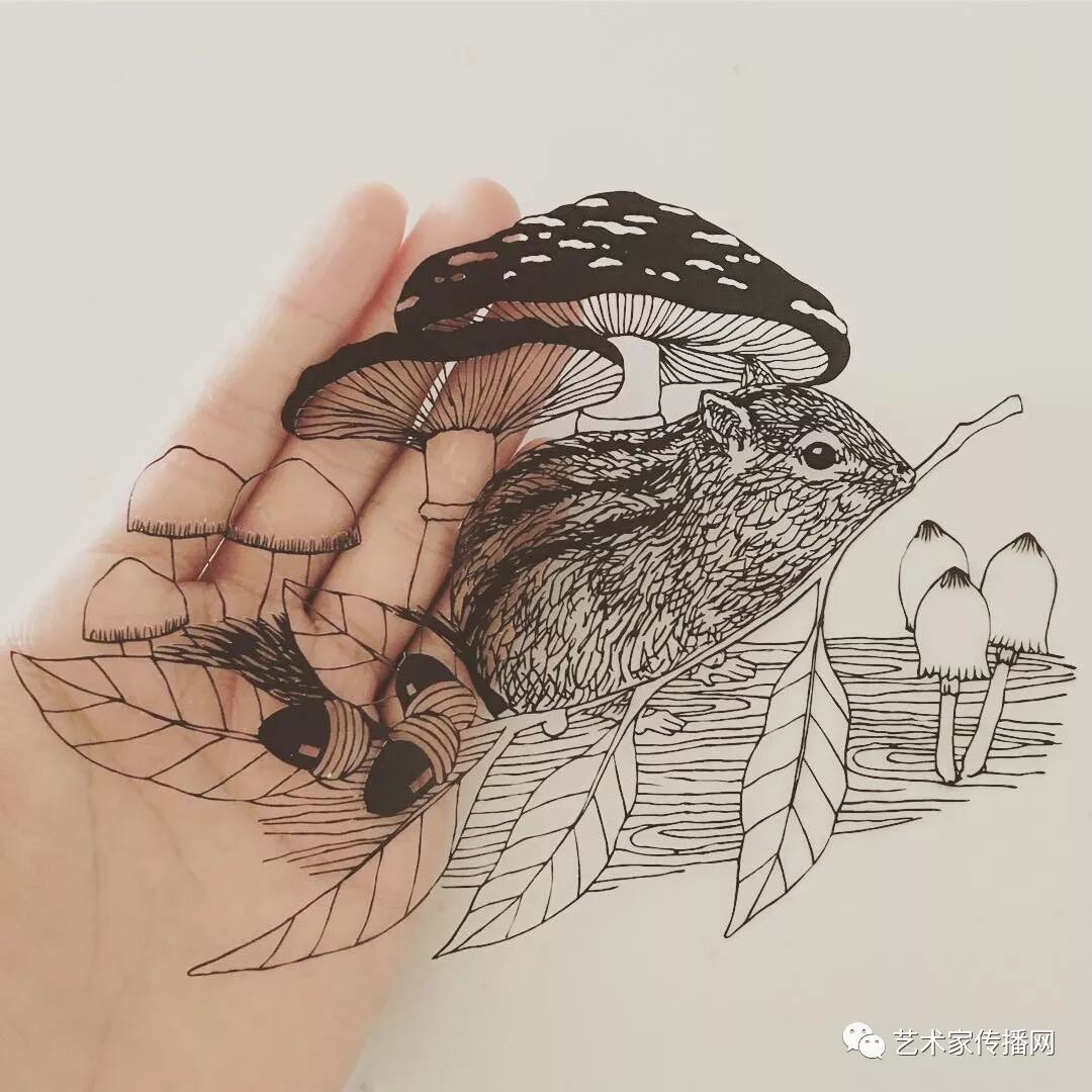 是一位美国美国旧金山艺术家,擅长用各类纸张创作镂空雕刻艺术作品。她从2012年开始学习伊势型纸技艺并开始大量的进行练习,随着学习的不断深入和对技艺的熟悉,她开始把自己精心创作的作品发布在instagram上,并备受广大网友的喜爱。