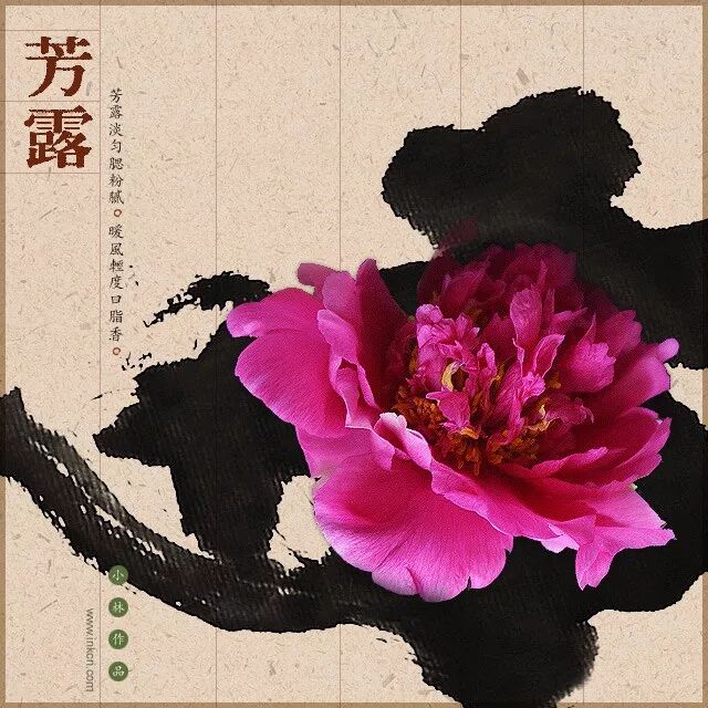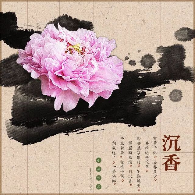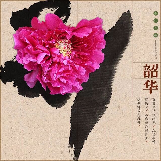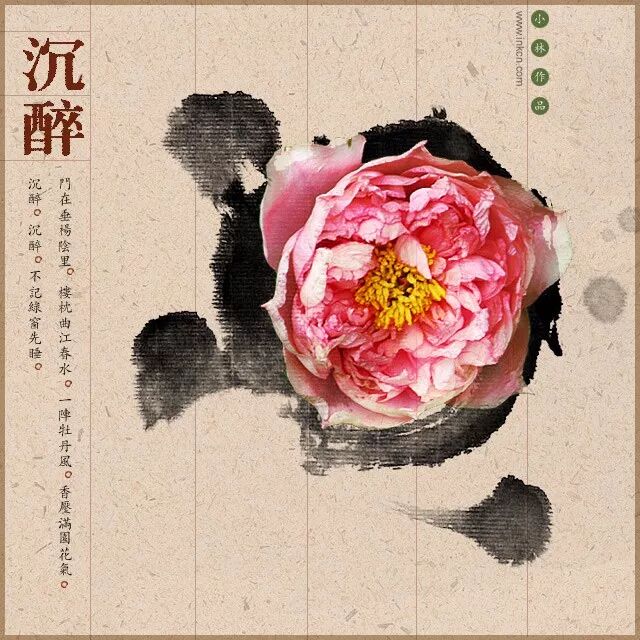 2005年,在公园拍的牡丹花,和纸上水墨的组合效果,那时沉迷平面设计,无法自拔: