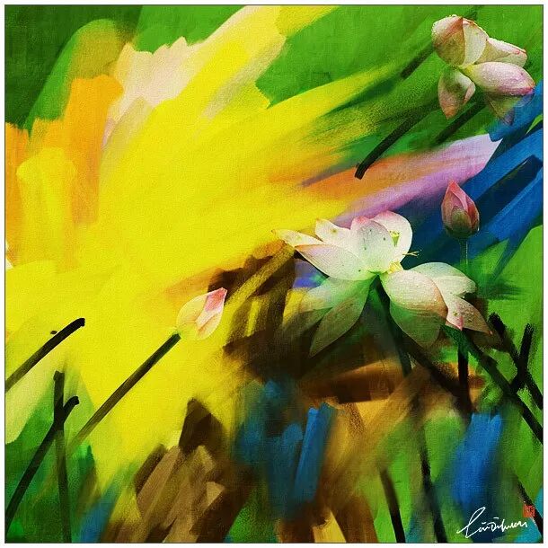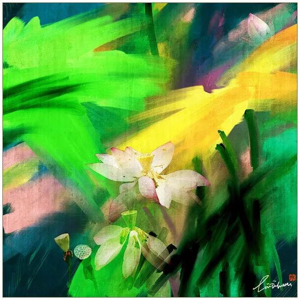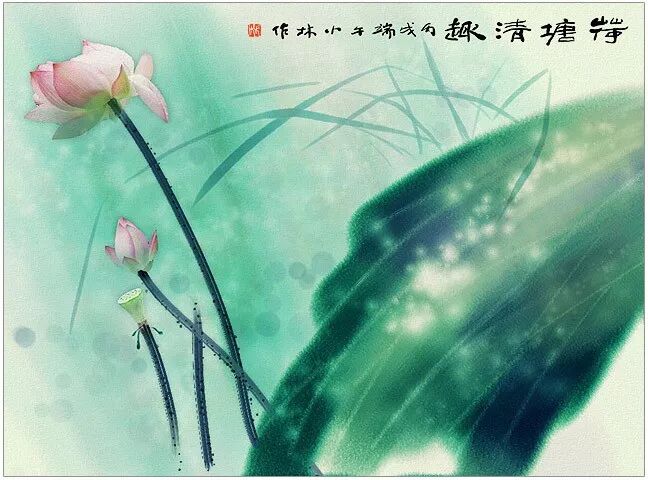 2005年的时候,在学校小池塘拍了一些荷花,由于很喜欢画画,所以刻意用PHOTOSHOP 的笔触效果模仿绘画: