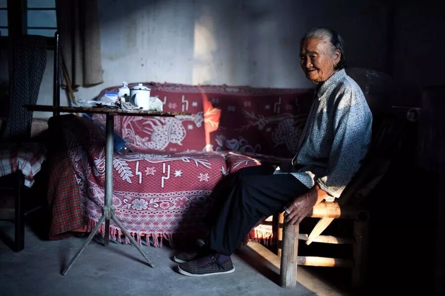 拍完后我请老奶奶在她独居的老屋坐下,在最后一缕夕阳里拍下这张照片。