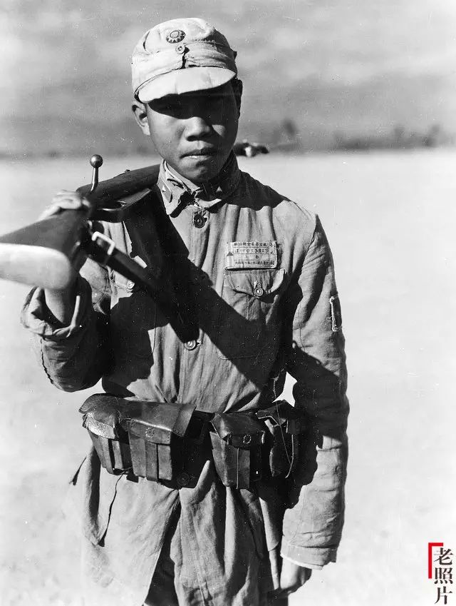 1943年,一名负责警卫昆明机场的战士。左胸上的布牌写着他的名字“傅成铭”,“民国三十二年入伍”,在“航空委员会特务旅第五团第三营十二连”服役。