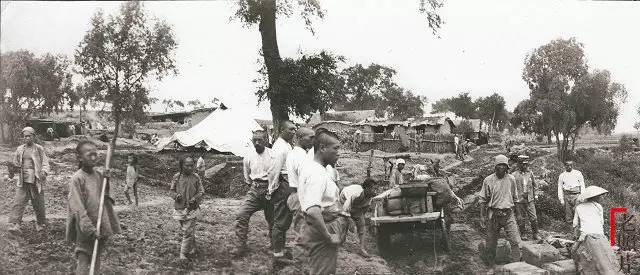 华工远赴法国参加一战,为战后中国获得战胜国地位作出了巨大贡献。图为华工在华工营排队接种疫苗。摄于1917年。
