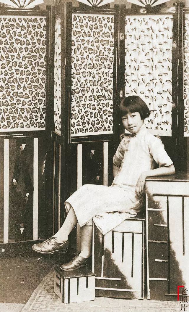 一位少女悠然地坐在屏风前,青春盎然的脸庞流露出一丝忧郁。摄于20世纪40年代。