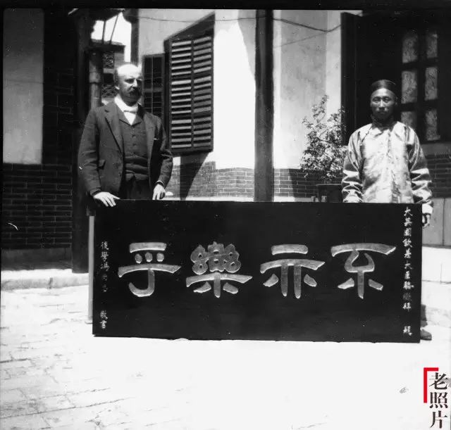 威海卫租借地行政长官骆任廷拜访曲阜,赠送给第七十六代衍圣公孔令贻牌匾。“大英国钦差大臣骆檄拜”等字样清晰可见。摄于1903年。