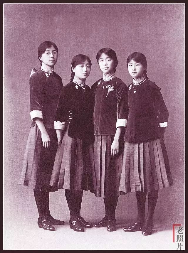 她们身上穿的是北京培华女子中学的校服。摄于1916年。