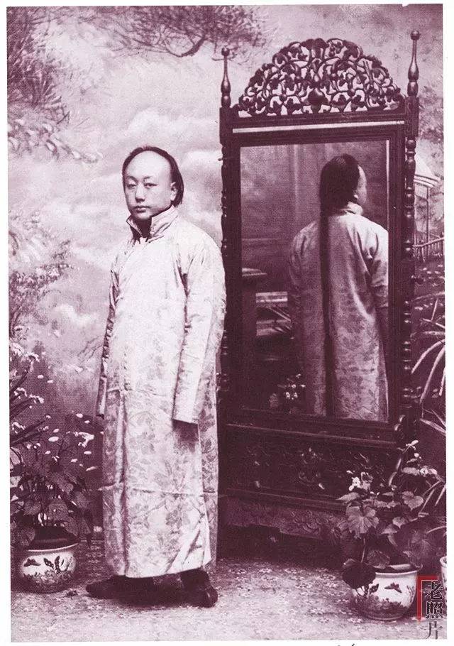 1912年,一位年轻人剪辫之前在照相馆的留影,与陪伴了自己二十几年的长辫作最后的告别。