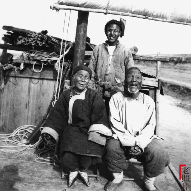 小清河上的船夫一家,船主已七十三岁,身体健康、精力充沛,比他小六岁的妻子只掌舵不做饭,一家人“幽默乐观永不知疲倦”。摄于1903年。